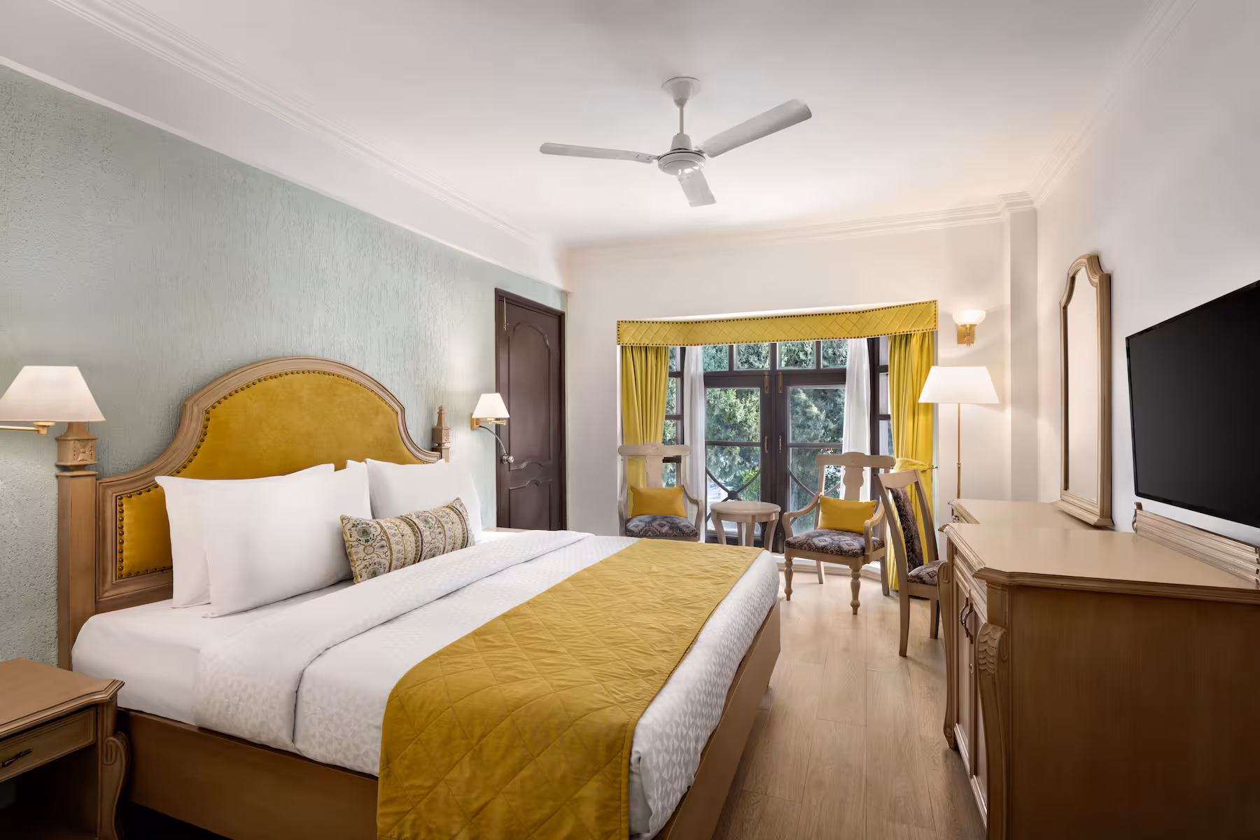 Indulge in the charm of Garden Valley View Rooms, meticulously designed to offer an unforgettable experience during your stay. These spacious rooms feature private sit-outs with Victorian windows that open onto a lush green garden overlooking the valley, allowing you to soak in the natural beauty of the surroundings.